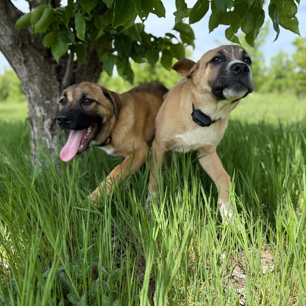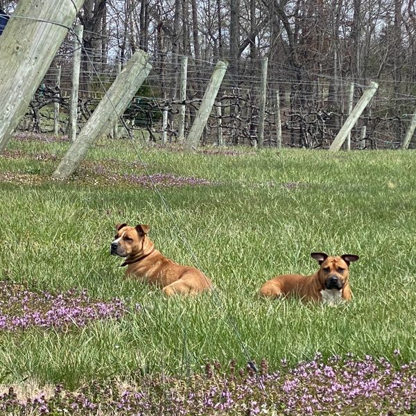 Meet Duke and Lila, our energetic Pitbull-Terrier mixes and vigilant guardians of Virginia Gold’s orchards, pastures and forests. With their sharp instincts, boundless energy, and deep devotion to the land, they play a vital role in protecting both our livestock and our fields.